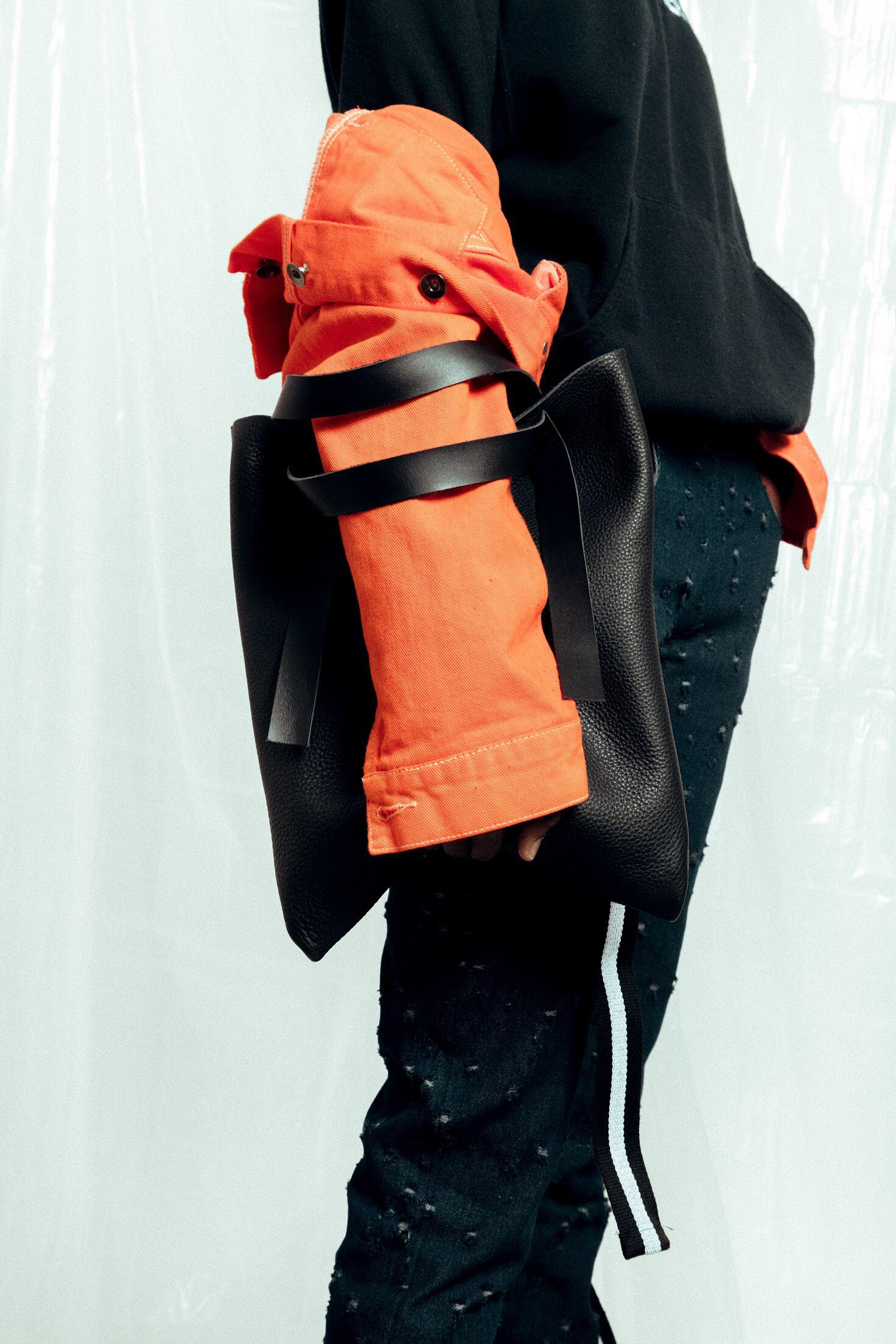 Phera: ‘DESIGNER” Capsule 2 was Inspired by the streets and creative field of hard working individuals and of course the Chicago weather. The capsule includes a new and improved “DESIGNER” heavy embroidery hoodie and a balaclava. We also see a safety orange long sleeve tee and cut and sewn denim jacket. There will be more specialty items to be released shortly after the drop that include cut and sewn joggers, waxed knit pant, DESIGNER bodysuit and a leather short handle DSNR Tote.