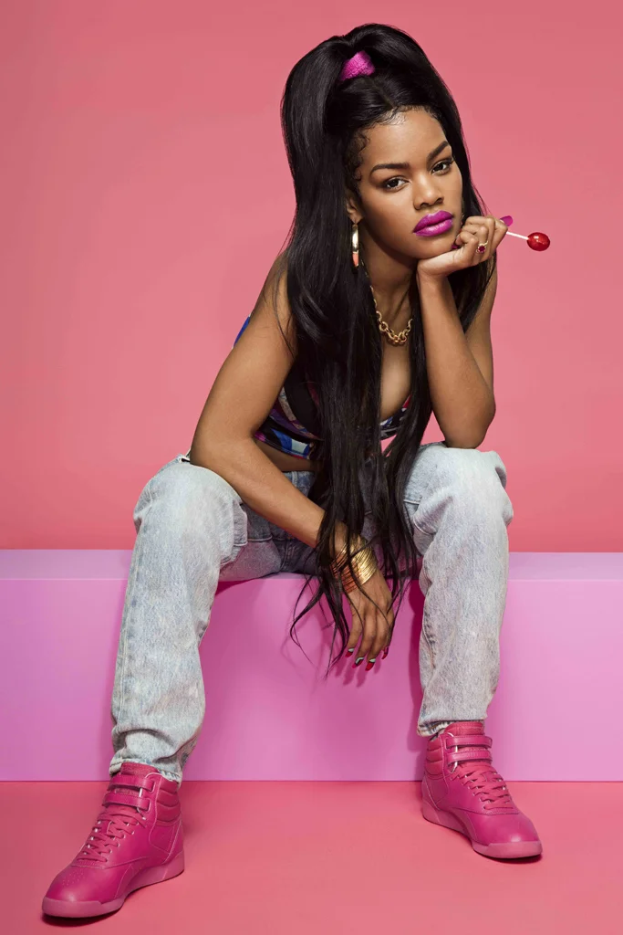 Teyana Taylor continues to recall the '80s in a new campaign for Reebok’s just-released Freestyle Color Bomb Pack.